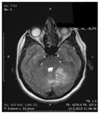 Figure 1 Cranial MRI revealed a hydrocephalus due to pressure on the 4th ventricle in the left cerebellum.
