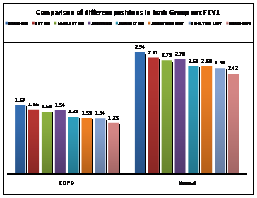 Conclusion: It is concluded that there is significant difference in the effect of different body positioning on dynamic lung functions in COPD and normal subjects with the maximum results in standing and least in headdown position.