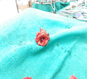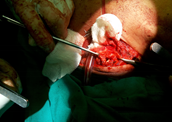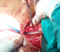 We have planned for an awake fiberoptic tracheal intubation keeping the difficult airway cart ready. After airway preparation (inj glycopyrolate 0.2 mg iv, lignocaine 4% 4 ml nebulization for 20 min and bilateral glossopharyngeal nerve blocks), induction of anaesthesia was done with inj. midazolam 0.5 mg, fentanyl 20 µg in divided doses maintaining the spontaneous respiration. Awake fiberoptic bronchoscope was tried and the FOB could be negotiated till the obstruction but it was not possible to insert beyond the obstruction. Procedure was abandoned on that day. We decided then to post the operation on the next day with cardiopulmonary bypass (CPB) machine standby from the very beginning. On the next proposed day, patient was shifted to OT. Continuous monitoring of all parameters like NIBP, pulse rate, ECG 5 lead with ST segment analysis (ASA standard) was carried out. Intravenous canulation was secured and antibiotic piperacillin - tazobactum was started. A radial arterial line was then inserted for continuous monitoring of IBP. Femoral arterial and femoral venous canulation was also introduced. This was the provision of femoro-femoral bypass to go on CPB immediately in any airway catastrophy. Patient was preoxygenated with 100% O2 for 5 minutes. Fentanyl 20 µg and midazolam 1 mg injected very slowly. Multiple small doses of propofol (10 mg +10 mg) and fentanyl (10 µg +10 µg +10 µg) was injected preserving spontaneous respiration unaltered. An ILMA size 3 was introduced and spontaneous ventilation was maintained with 100% O2 and multiple small doses of propofol (10 mg aliquots, total 70 mg) and fentanyl (total 50 µg). The patient was on spontaneous ventilation with intermittent assist but EtCO2 was increased to 45-60 mmHg within 10 min after induction. Surgeons were then asked for trecheostomy immediately. But through that critically narrowed tracheostomy stoma smallest size tracheostomy (size) tube could not be inserted. Finally, primary tracheal resection was done at T2-T3 level immediately and very quickly (within 10min) with 1% lignocaine local infiltration at cricoid level. Then rapid dissection of distal to stenosis was done and a sterile 7.5 mm ID ETT was directly inserted by the surgeon through open trachea distal to stenosis and the other end of the ETT was handed over to us to which a sterile breathing circuit was attached quickly and ventilation was adequately established. EtCO2 decreased gradually to 33mmHg. Muscle relaxant vecuronium 4 mg and fentanyl 100 µg then administered and patient was mechanically ventilated with tidal volume 300 ml, respiratory rate 35/min, airway pressure 20 cmH2O, I:E=1:2.5. The total procedure from skin incision to establish adequate mechanical ventilation took 5 min. Though during this period vitals were stable (heart rate-90-110/min, BP-124-130/70-76 mmhg, ECG – normal sinus rhythm), but SpO2 drops to 95% with 100% O2, EtCO2 increased to 55 mmHg. In ABG: pH 7.30, pO2 100, pCO2 60, BE -0.2, HCO3 26.3, Na/K 130.2/3.27, Hb 13g/dl, Hct 39, SaO2 100%, Ca 1.1. But EtCO2 comes down to 30mmHg and SpO2 becomes 100% just within 1 min of establishment of mechanical ventilation. After 15 minutes of mechanical ventilation ABG was done which shows: pH 7.37, pO2 291, pCO2 33, BE 1.1, HCO327, Na/K 134.2/3.7, Hb 12.5g/dl, Hct 37, SaO2 100%, Ca 0.91. The stenosed trachea (Figure 2) was excised (Figure 3) and planed for end-to-end anastomosis. After suturing the posterior wall of trachea, a sterile stylet was introduced by the surgeon through open trachea towards the vocal cord. LMA was removed and oral suction under direct laryngoscopy was performed. With the help of Magill’s intubating forceps, the stylet (introduced by the surgeon) was caught over which a 7.5 mm ID a second ETT was railroaded and first ETT (Figure 4) was withdrawn by the surgeon. Finally, the breathing circuit was attached to the second ETT and ventilation was adequately established. Anaesthesia was maintained by N2O, O2, isoflurane. Inj dexamethasone 8 mg and 100 mg hydrocortisone i.v. were injected in the intraoperative period. Anterior wall of trachea was sutured at a particular neck-flexed position and flexion was maintained postoperatively also by suturing the chin with the anterior chest wall. The vitals (HR, IBP, Temp, EtCO2, SpO2, ECG, and CVP) were monitored throughout the perioperative period. Patient was extubated on table after adequate return of reflexes with neostigmine and glycopyrolate. Patient was shifted to ICU with continuous monitoring of all vitals. Fortunately, the postoperative period was uneventful. Patient was shifted from ICU at Day 3 and discharged from the hospital at Day10 with an uneventful postoperative course.