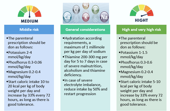 Summary of the critical clinical considerations to be taken into account in the treatment and prevention of refeeding syndrome. (See Figure 2) To treat and prevent this condition in adults, several key steps should be followed: