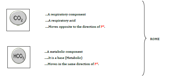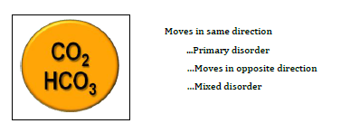 Compensation for simple acid-base disturbances always drives the compensating parameter (ie, the PCO2, or [HCO3-]) in the same direction as the primary abnormal parameter (ie, the [HCO3-] or PCO2) & compensation for mixed disorder always drives compensating parameters in the opposite direction as the primary abnormal parameters.