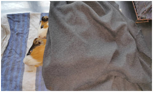 The guinea pig was anaesthetized by intramuscular injection of 0.26mL (@8mg/kg body weight xylazine (xylaxin®, 20mg/mL, India Immunologicals Ltd., Hyderabad, India), 0.75mL ketamine (G-ketamine®, 60mg/mL, Gonoshasthaya Pharmaceuticals Ltd., Mirzanagar Dhaka, Bangladesh). The pet became unconscious within two minutes. As soon as the pet was anesthetized, during the preparation of surgical site and surgical procedure the pet was provided with warmth using towel wrap as the guinea pigs are sensitive to hypothermia while under anaesthesia. The temperature, heart rate and respiration are monitored throughout the procedure. The scrotal area of about 4 cm x 5 cm was shaved and cleaned (Figure 3 & 4).