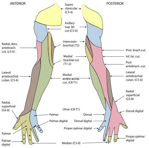 Several variations exist in the neuro- anatomy of the forearm as described in textbooks. This variability and overlap of nerve supply mean that it is illogic to depend on the block of a single nerve supplying sensation to the operative field unless proper testing of sensory loss is obtained. Six nerves may be blocked around the elbow and provide anaesthesia for the forearm and hand. The following key points are important when performing these techniques:
