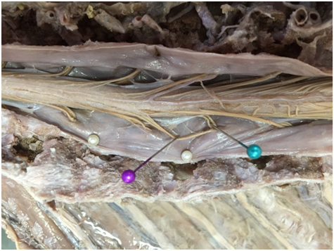 It is virtually impossible to perform unilateral spinal anesthesia with full doses of the drug.4 In practice, a conventional unilateral spinal anesthesia technique can only result in a motor hemi‑block and a sensory block preferential to one side.4 The spinal cord emits nervous filaments, the anterior radicula (motor fibers) and the posterior radiculae (sensitive fibers) from the antero-lateral and postero-lateral sulcus of the medula, respectively (Figure 2). Both radicula go to the conjugation foramen formed by each superposed pair of vertebra. After the formation of the ganglia of the posterior roots by the posterior radiculae they turn themselves to the sensitive portion of the nerves, unite to the anterior radiculae that emerge from the spinal canal as spinal nerves. The distance between the spinal roots on the right and left sides is, approximately, 10 to 15 mm in the lumbar or thoracic region, and this reduced distance is enough to produce restricted unilateral block of the spinal roots.