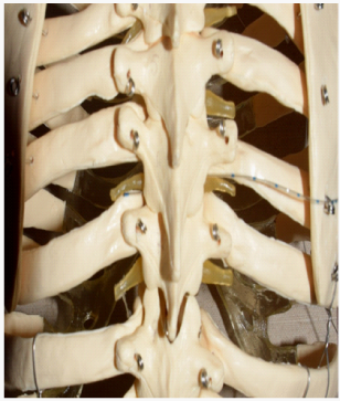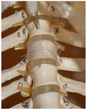 Figure 1 Paravertebral catheter reached contralateral paravertebral space via intervertebral for amina.