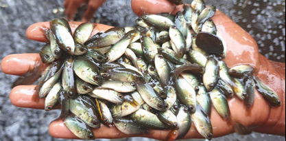 Fry selection and stocking: The fry should be collected from a reliable hatchery. The quality of the fry is utmost important to get a good production from the culture. Fry should be checked by a Fisheries Specialist during purchase the fry from a hatchery. A minimum of 06 hours of conditioning of the fry is important before packing the fry.27 Fry size average 2 – 3 gm and 300 – 350 pieces/ decimal mixed fry of koi and tilapia can be stocked in the pond for commercial fish culture (Figure 1,2).2 Koi and tilapia fry stocking ratio can be 2:1 per decimal.28 March- April (Rainy season) is suitable season to start the culture.