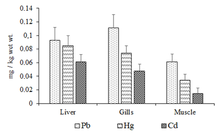 Figure 2 Toxic metal amounts with standard deviation in the liver, gills and edible tissues of golden grey mullet from Sinop shores of the southern Black Sea in 2016.