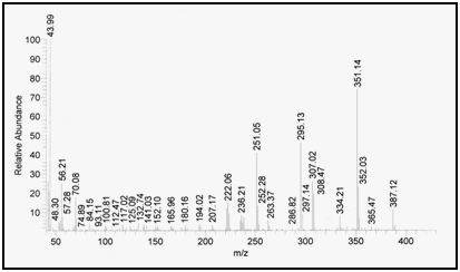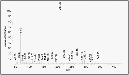 Confirmation of degradation product using mass spectrometry: Mass spectrometry was performed for the intact drug and its degradation product and molecular ion peak was obtained at m/z=387.12 and m/z=343.13, respectively indicating that the molecular weight of the degradation product is 343.13 as shown in Figure 8 & Figure 9.