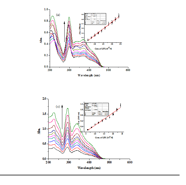 Stoichiometry: The nature of binding of reagent to the drug was determined by continuous variation method.17 The results indicated that 1:1, [PA]: [drug] ion-pair is formed through the electrostatic interaction between positively protonated LFX and negatively charged PA, as shown in the proposed mechanism (Figure 4).
