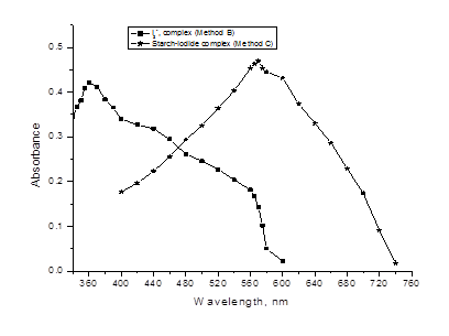 A 5% potassium iodide (Merck, Mumbai, India) solution was prepared by dissolving 5g potassium iodide with water in a 100mL calibrated flask. This solution was prepared a fresh daily. A 2% solution was prepared separately for spectrophotometric work.