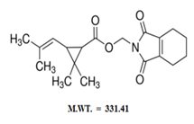 Tetramethrin](1,3-dioxo-4,5,6,7-tetrahydroisoindol-2-yl)methyl2,2-dimethyl-3-(2-methylprop-1-enyl) cyclopropane-1-carboxylate [is a broad-spectrum, first-generation synthetic pyrethroid insecticide often used to target insects such as wasps, hornets, roaches, ants, fleas, and mosquitoes. It is oftentimes combined with another active ingredient for more broad range pest control, or for more effective long term treatments.1 Tetramethrin is commercially available in the form of lotion containing 0.006g of tetramethrin per mL combined with 0.024g of piperonyl butoxide per mL for topical treatment of pediculosis (lice infestations). Tetramethrin has a molecular formula of C19H25NO4 and molecular weight of 331.41g/mol.2 There are numerous different instrumental techniques used for the determination of tetramethrin. The available methods include voltammetric determination,3 capillary electrophoresis,4 spectrophotometric,5 as well as infrared spectrometric methods.6 However, the most widely applied techniques are chromatographic methods, such as gas chromatography (GC) with electron capture detection (ECD)7 or with mass spectrometry (MS),8 as well as high performance liquid chromatography (HPLC) with diode array (DAD)9 or with MS detection.10