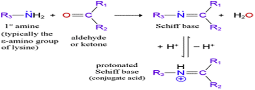 The formation of a Schiff base by condensation reaction is influenced by pH of the solution, steric and electronic effects of the carbonyl compound and amine. The reaction for the formation in highly acidic solutions is unfavourable as the amine is protonated hindering the nucleophilic ability and in very basic conditions, there is unavailability of sufficient protons to catalyze the elimination of the hemiaminal (carbinolamine) hydroxyl group (dehydration step).5