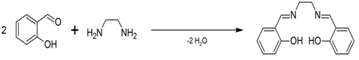 Consequently, an acid catalyzed condensation reaction of amine with an aldehyde or ketone under refluxing conditions is a very common practice. Generally, aldehydes are used as they react faster than ketones in condensation reactions been that they are less sterically hindered and more electrophilic than ketones which has more electron density. Salen ligand has been noted6 to possess four co-ordinating sites and when co-ordinated to an octahedral metal centre leaves two axial sites where ancillary ligands can co-ordinate. The formation of Salen is shown in Figure 2.