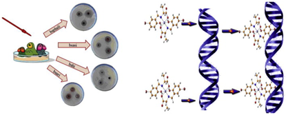 Figure 7 Schematic diagram for antibacterial activity and DNA interaction of metal complexes through intercalative binding.