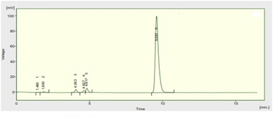 The Mobile phase Benzene: Methanol (6:1 v/v) Rf value- 0.80 (Figure 1).