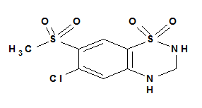 Hydrochlorothiazide (HCT) is a white, practically odorless crystalline powder, slightly soluble in water, sparingly soluble in alcohol and soluble in acetone (pKa 7.0). HCT is chemically described as 6-chloro-1,1-dioxo-3, 4-dihydro-2H-1, 2, 4-benzothiadiazine-7-sulfonamide (Figure 1B).4−6