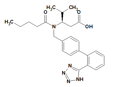 Valsartan (VAL) is a white fine powder. It is soluble in ethanol and methanol but slightly soluble in water. Its melting point is 117oC. VAL is available as tablets for oral administration, containing 40, 80, 160 or 320mg of the drug. VAL is a nonpeptide, orally active and specific angiotensin II receptor blocker acting on the AT1 receptor subtype. VAL is chemically described as N-(1-oxopentyl)-N-[2'-(1H-tetrazol-5-yl) [1, 1’-0biphenyl-4-yl] methyl]-L-valine (Figure 1C).