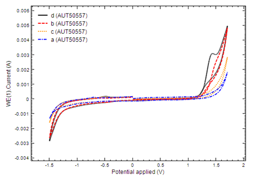Electrochemical measurements were carried out using a potentiostat-galvanostat μ Autolab (Echochemie, B.V., Netherlands, NOVA softare) and a conventional three electrode arrangement consisting of PGE modified with p-ABSA/CB (6) as the working electrode (PGE type is HB=2½ Faber-Castell gold faber 1222), an Ag/AgCl/KCl (3molL-1) as the reference electrode (Inner filling Metrohm 6.0726.100Ag, AgCl/080°C, outer filling 01153123) and a platinum wire (Metrohm 6.0301.100pt/-2070°C 01250290) as the auxiliary electrode.