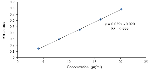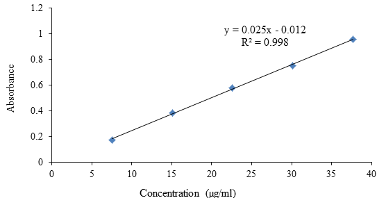 For the preparation of the standard solution, 50 mg of Mirtazapine was weighed accurately and added to 50 ml of 0.1N hydrochloric acid in a volumetric flask. It was then shaken and volume was made up to 100 ml with the medium. 1 ml of the solution was pipette out and diluted to 50 ml with the medium. For the preparation of the sample solution, 5 tablets from each batch were taken in a 100 ml volumetric flask, and volume was made up to the mark with 0.1N hydrochloric acid. It was then stirred well and filtered separately. 10 ml of the filtered solution was then diluted to 50 ml with the same medium. The absorbance of both the sample and standard solution was measured spectrophotometrically at 316 nm using 0.1N HCl as blank. The drug content in percentage was calculated by using the formula