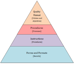 The final level in the hierarchy of documentation is the forms. These forms and the records created using them are a crucial part of the QMS as they are the evidence that a procedure and related instructions have been carried out.