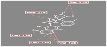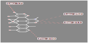 Figure 10 Steric interaction of CHO doxycycline analogue with amino acids residue of Pseudomonas aeruginosa lipase.