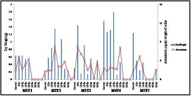 Effects of gamma irradiation on artemisinin production during m1t1 to m5t5 generations