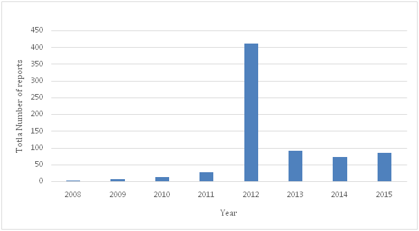 Figure 6 The total number of adverse events reported by the Saudi FDA during the period (2008-2015) by all types of outcome of adverse events.
