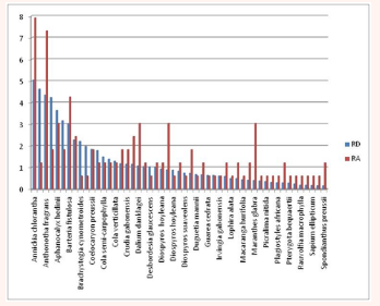 Figure 3 Abundance and dominance of species in Alstonia boonei banana’s plantations habitats.