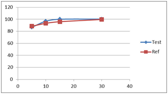 Dissolution in pH 2.0 media the samples gives more than 85% in the first 5min. While in acetate media pH 4.5 the dissolution rate decreased but still more than 85% in 30min but it is less than 80% after 15min. the dissolution in acetate media was repeated after removal of magnesium stearate from the capsule to find out that dissolution rate exceed 85% in the first 15min (Table 4) (Figure 6).