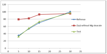 During dissolution it was observed that absence of magnesium stearate from the formula rises the rate of dissolution especially in acetate and phosphate media therefore IR test and Differential scanning Calorimetry (DSC) to assure the relation either hydrophobic effect or hydrogen bonding.8