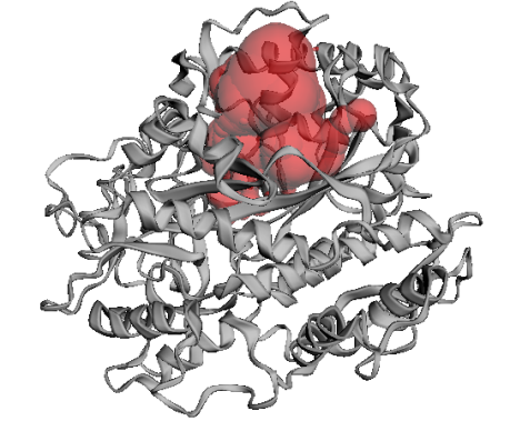 As predicted by the active site, a pocket of an area (SA) of 1123.097 and a volume (SA) of 1283.631 was identified (Figure 5). The modelled protein was predicted to have a total of 236 amino acid residue at the active site. Moreover, the more favourable sites were selected for the docking analyses base on the similarities found in the structure alignment of the modelled protein to the template: GLY 2A, LEU 3A, LEU 4A, ARG 40A, TRP 47A, GLY 48A, ASP 49A, GLU 50A, GLU 52A and PRO 109A.