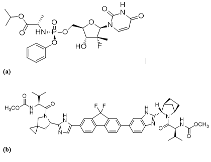 Sofosbuvir is a pangenotypic inhibitor of the HCV NS5B RNA-dependent RNA polymerase, which is essential for viral replication.6 It is a nucleotide prodrug that undergoes intracellular activation to form GS-461203 (active triphosphate, not detected in plasma), and ultimately the inactive, renally eliminated metabolite GS-331007.7 The pharmacologically active uridine analog triphosphate (GS-461203) can be incorporated by HCV NS5B and acts as a chain terminator. In a biochemical assay, GS-461203 inhibits the polymerase activity of the recombinant NS5B from HCV genotype 1b, 2a, 3a and 4a with an IC50 value ranging from 0.7 to 2.6µM. GS-461203 is neither an inhibitor of human DNA and RNA polymerases nor an inhibitor of mitochondrial RNA polymerase.8 In 2013, the FDA approved SOF, in combination with RBV, with or without PEG-IFN depending on genotype, is recommended for HCV GT 1, GT 2, GT 3 and GT 4.9,10 Sofosbuvir/Ledipasvir is a fixed-dose combination (FDC) tablet containing sofosbuvir (previously approved NS5B polymerase inhibitor) and ledipasvir, a new NS5A-inhibitor.5