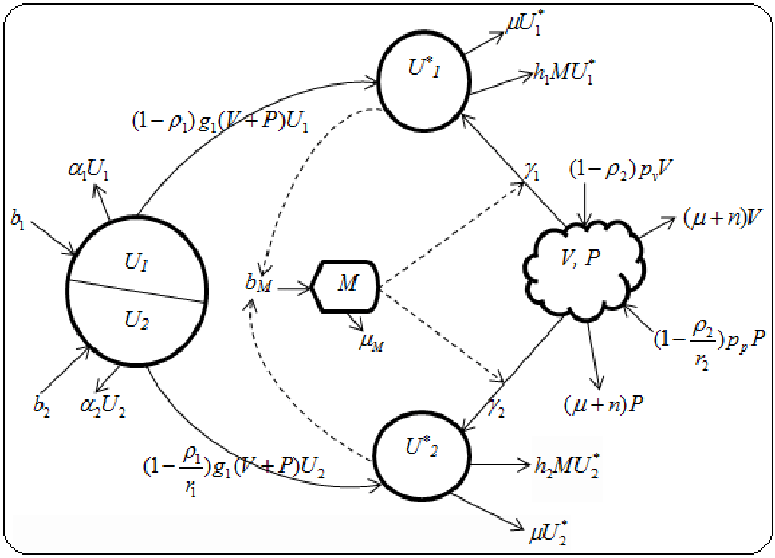 Laconically, equations (1)–(7) present the model of the system and the epidemiological terms are carefully defined thus: in equation (1),