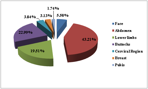 Gender:The sex-ratio was 0.6 in favor of women which accounted for the highest percentage of lipodystrophy cases with 62.37% (Table 3).