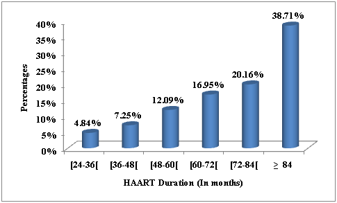 The therapeutic protocol of our HIV-infected patients consisted of 2 NRTI + 1 NNRTI or 2 NRTI + 1 IP/ r (Table 1 & Figure 1) and the mean duration for treatment of these patients was 4 years (48 months).