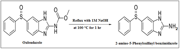 One gram of oxfendazole was dissolved in 25mL 0.1M methanolic hydrochloric acid, and then transferred into 250mL conical flask, then 50mL of 1M NaOH solution was added. The flask was heated to boiling under reflux for 1hr, cooled and neutralized with 1M HCl. Subsequently, the solution was dried under vacuum then the degradation product was extracted with methanol and re-crystallized after evaporating methanol.