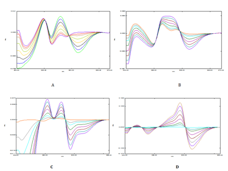 Figure 3 Ratio derivative spectrum of TML using BRM for (A) addition (B) Subtraction (C) Multiplication (D) Division.