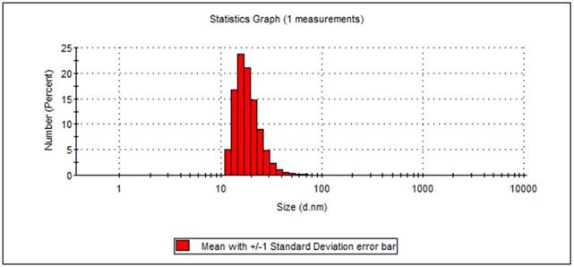 The result showed silver nanoparticles of 15.69nm to 105.7nm diameter were distributed by intensity. But nanoparticles of more than 100nm diameter were formed during synthesis. The DLS analysis provided average 169.10nm diameter silver nanoparticles were distributed in 1mL of nanoparticles sample solution by intensity. However, the 19.05nm of SNPs were distributed with 100 % number distribution. SNPs of 42.43nm and 346.7nm were distributed with 57% and 16 % respectively by % volume distribution. Zeta potential measures the effective electric charge on the nanoparticle surface and provides characterization parameter for stability in aqueous AgNPs suspensions.24 In present study C. reflexa extract mediated SNPs showed -23mV presented in Figure 7. It has been reported that SNPs with zeat potential -25mV to -+25mV posses good stability in aqueous suspension.25 DLS analysis SNPs of present study correlates with the DLS analysis of SNPs of previous studies.