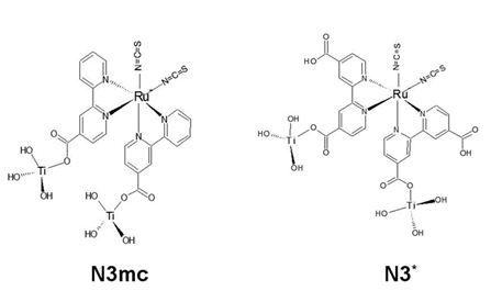 Calculated values for N3mc and the corresponding N3* are displayed on Table 2. To perform a more accurate comparative analysis, the N3 complex was calculate with a molecular structure were the two Ti(OH)3 groups are anchored in different dcbp ligands.