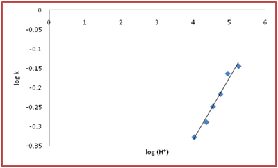 The values of kobs were determined at three different temperatures in the range of 30°C to 40°C. The results are given in Table 5. By plotting a graph between log k v/s 1/T yield us an apparent empirical energy of activation 26.43 KJ moL-1.