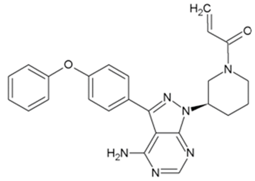 Ibrutinib(, also known as PCI-32765 and marketed under the name Imbruvica) (Figure 1) of formula C25H24N6O2 and molar mass 440.497 is an anticancer drug targeting B-cell malignancies. It was approved by the US Food and Drug Administration (FDA) in November 2013 for the treatment of mantle cell lymphoma and in February 2014 for the treatment of chronic lymphocytic leukemia. Ibrutinib is currently under by Pharmacyclics, Inc andJohnson & Johnson's Janssen Pharmaceutical division for additional B-cell malignancies including diffuse large B-cell lymphoma and multiple myeloma.1,2 In January 2015, Ibrutinib was approved by the FDA for treatment of Waldenström's macroglobulinemia, a form of non-Hogkin´s lymphoma.