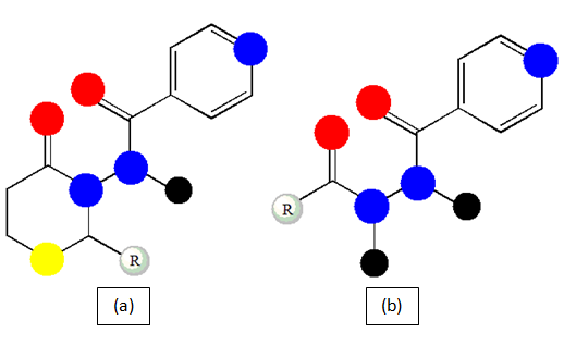 Figure 5 Basic chemical structure of 4-Benzylsulfanylpyridine-2-carbohydrazides (a) and Benzothiazolo naphthyridone carboxylic acid derivatives (b).