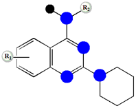 2,4-diaminoquinazoline derivatives (Figure 8 & 9): this versatile series has an attention drawing microbiological profile with bactericidal activity against replicating and non-replicating M. tuberculosis encouraging for the development of the series for bacterial viability.66