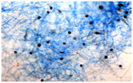 The fungal isolates were mounted on the sterile slides then it was stained with Lacto phenol cotton blue and then examined in 100X light microscopy. The identified fungal isolates from the respective plant tissue segments were then sub cultured in a petri dish which contains sterile PDA media. To preserve as a pure culture, the endophytic fungi was inoculated in PDA slant and stored at 4˚C.1,6