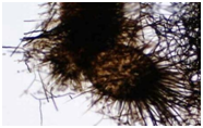 The surface sterilized segments were placed in the petridish (10 segments in each plate) containing Potato dextrose agar medium supplemented with streptomycin for the suppression of the growth of bacteria. The plates were incubated at room temperature until the mycelium or colony appears on the plate. To preserve as a pure culture, the endophytic fungi was inoculated in PDA slant. The purified endophytic isolates were transferred separately to PDA slants and accessioned accordingly depending upon the plant and plant parts from which they have been isolated. Finally all the purified endophytes were maintained at 4˚C till further used On basis of morphology of surface texture, pigmentation and spores at the hyphal tips which were used to identify the endophytic fungi.5