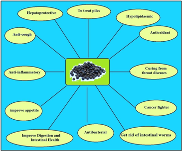 The genus Piper L. (family Piperaceae) consists of more than one thousand species, distributed mainly in tropical regions of the world.13 Piper nigrum L. (black pepper) is the most famous species of this genus, it is known as the "king of spices" due to its pungent principle piperine and the popularity in use for flavoring food throughout the world.14 On the other hand, P. nigrum (Piper nigrum) has been used for medicinal purposes in many parts of the world since ancient times. Medicinal uses of P. nigrum include antibacterial, antifungal, antiapoptotic, antidepressant, antidiarrheal, anti-inflammatory, antimutagenic, antioxidative, antipyretic, antispasmodic, antitumor, to improve appetite and digestive power, anti-cold, anti-cough, dyspnea, for curing from throat diseases, anti-intermittent fever, anti-colic, anti-dysentery, get rid of worms and piles,14,15 some of these uses are illustrated in Figure 1.