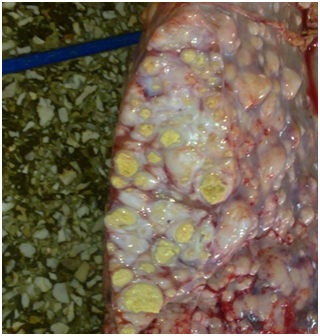 Lesions in cattle are most often found in organs rich in reticuloendothelial tissue, particularly the lungs and associated lymph nodes.25 Lesions are most commonly present in the lower respiratory tract, however the upper respiratory tract and its associated tissues also displays disease in many cases (Figure 1) (Figure 2).