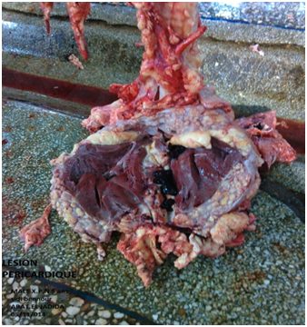 The necropsy procedure performed after slaughtering of animals allows for the detection of gross lesions suggestive of BTB, even in apparently healthy cattle. Veterinary inspection is established as a routine procedure in most of the slaughterhouses in developing countries. The detection of infected animals is mainly restricted to the routine slaughterhouse inspection.27 In cattle, tubercles are found in the lymph nodes, particularly those of the head Figure 4 and thorax. They are also common in the lung Figure 1, spleen, liver, heart Figure 5, kidney Figure 6 and the surfaces of body cavities. In disseminated cases, multiple small granulomas may be found in numerous organs. Lesions are sometimes found on the female genitalia, but are rare on the male genitalia.