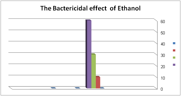 Result shows that higher concentrations of ethanol are more effective than lower concentrations in the disinfection process. It also shows that more time of exposure results in more effective disinfection by Ethanol. As shown in Table 1 & Figure 2 Bactericidal affect of different concentrations of ethanol (100%, 90%, 80%, 70%, 60%, and 50%) on the different Staphylococcus species at different exposure times (10seconds, 30seconds, 1minute, and 5minutes) by percentage.