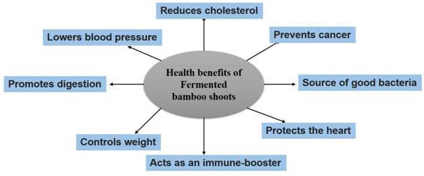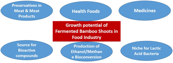 Although the use of bamboo shoots in tribal diet continues to be an age-old traditional practice, yet the food potential of the bamboo shoot per se remained little known all these years. There arises immense need to explore them as a food source, their nutritive and medicinal values, microbiological and economic importance of bamboo shoots with a holistic perspective. These are popular in Asiatic countries and constitute a major component of their traditional cuisine and now it is slowly gaining attention even in western countries. Being low in fat, high in dietary fibre and rich in mineral content, like an ideal vegetable, these have been used traditionally by tribal people for decades globally.1 In recent years, these have attracted many research groups in Asia and evidences showed the immense nutritive and medicinal potential of Bamboo as it has been used in various traditional systems of medicine like Ayurveda.2 A deep insight into the biological and biochemical basis of indigenous knowledge of the ethnic people of Northeast India for production of non-perishable bamboo shoots by lactic acid fermentation helps to develop both low-cost functional foods, and understand the functionality of microbial diversity.